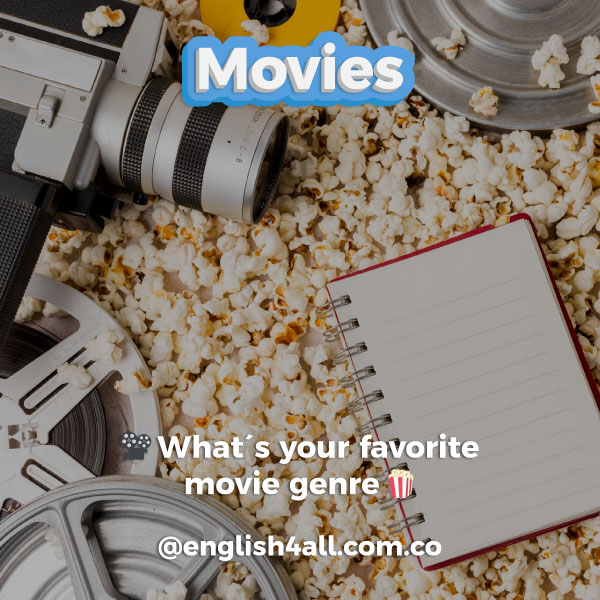 Today, we are going to talk about movies! 🎥 Everyone loves movies, but did you know there are different genres? A genre (pronounced “ZHAHN-ruh”) is a type or category of movie. When we ask, “What’s your favorite movie genre?”, we are asking:
